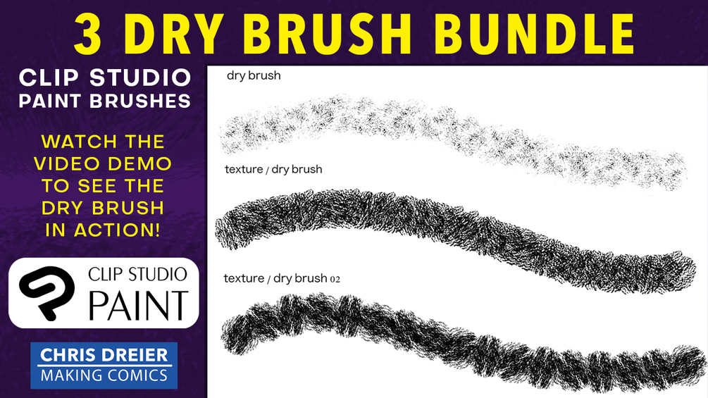 These three dry brushes come in handy for all sorts of effects and textures! I use them to fill large areas, add tone to rock or stone, sand, dirt, and like in this example below, a shadow for dirty metal.